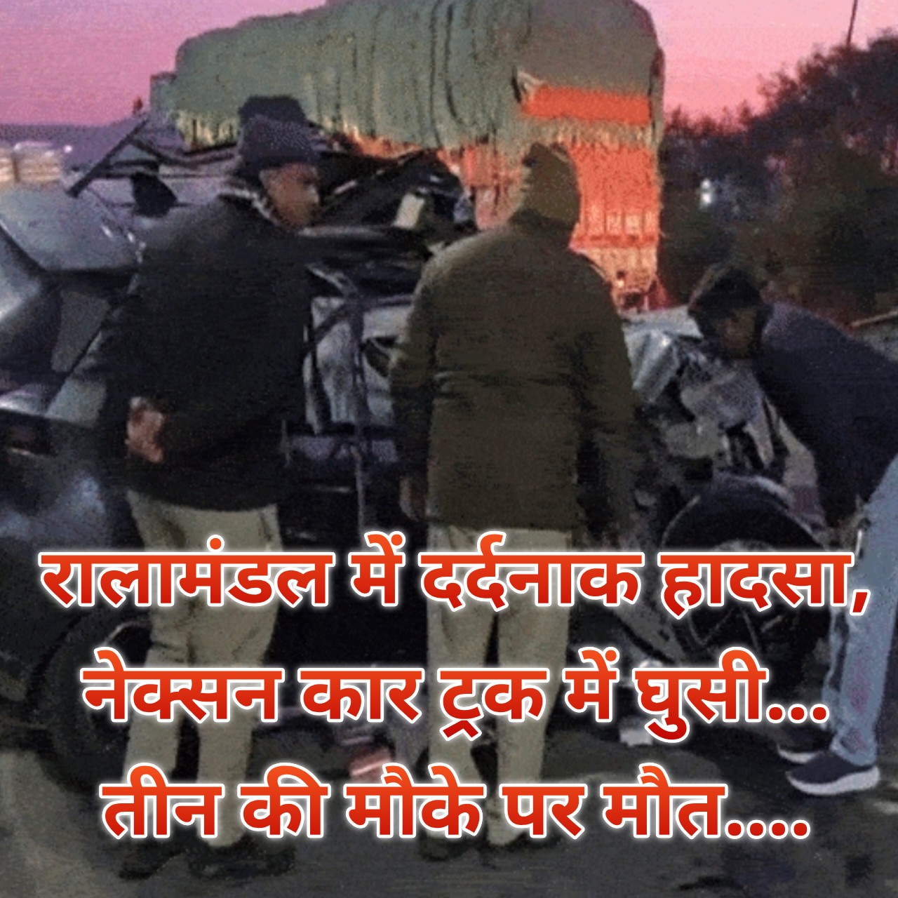 प्राप्त जानकारी के अनुसार हादसा इंदौर के रालामंडल क्षेत्र में सुबह करीब 5 बजे हुआ। तेज रफ्तार नेक्सन कार पीछे से एक ट्रक में जा घुसी। टक्कर इतनी भीषण थी कि कार बुरी तरह क्षतिग्रस्त हो गई और शवों को निकालने के लिए वाहन को काटना पड़ा।