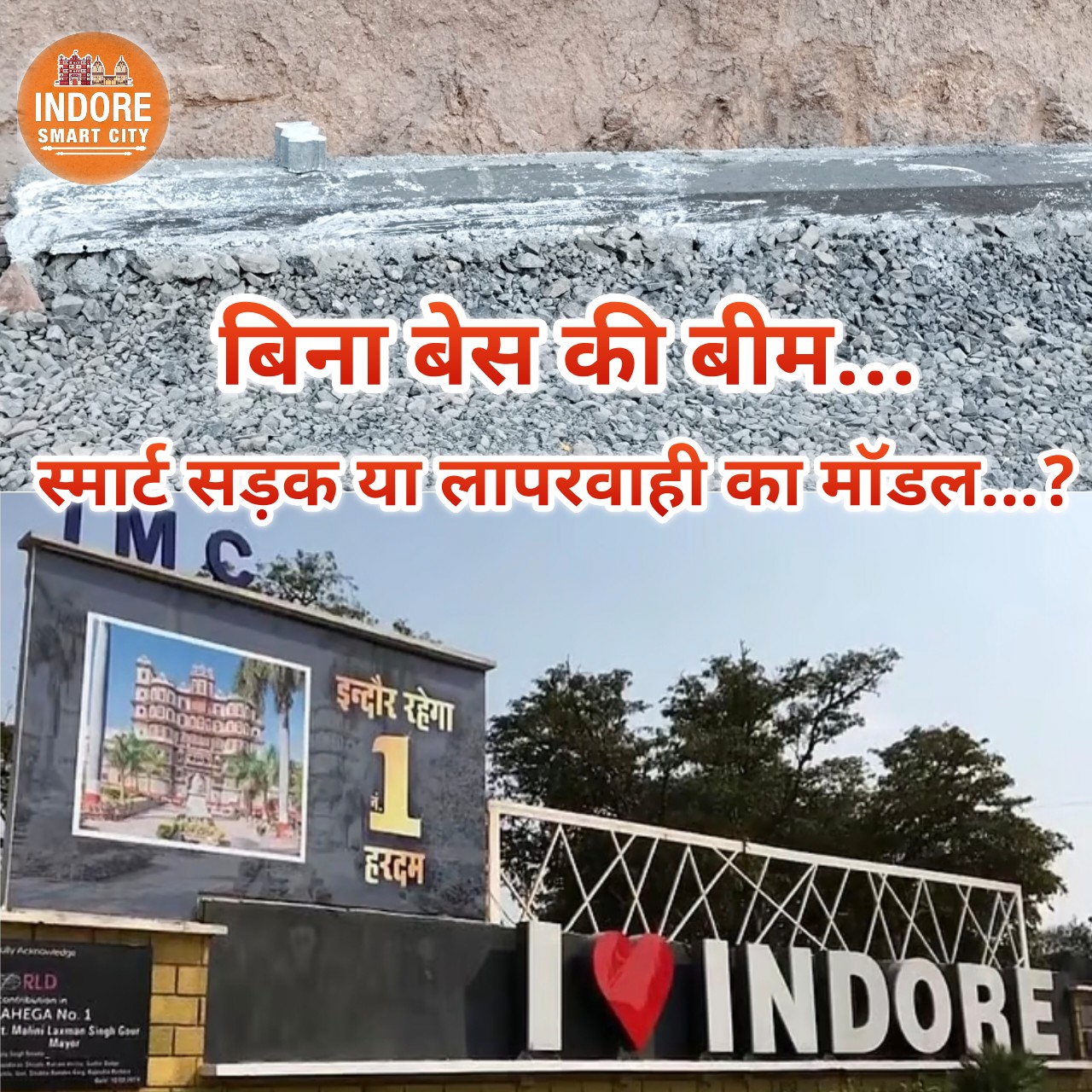 स्मार्ट सीटी इंदाैर में स्मार्ट प्रयाेग : गिट्टी पर ही टिका दी बीम, बिना बेस बन रही स्मार्ट सड़क...!
