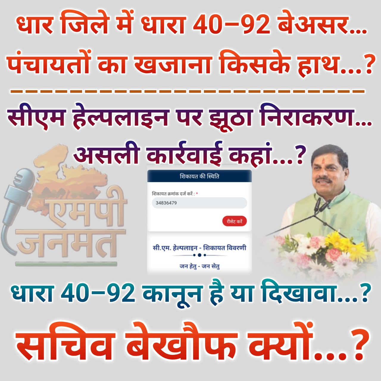 सीएम हेल्पलाइन पर ‘झूठा निराकरण’ का खेल...? धारा 40–92 बेअसर, सचिवों के हाथ में अब भी पंचायतों का खजाना...