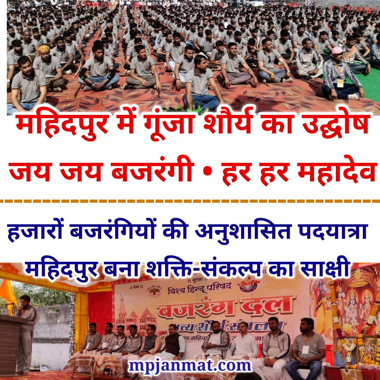 हजारों बजरंगी कार्यकर्ताओं ने गणवेश धारण कर घोष के साथ अनुशासित कदमताल करते हुए महिदपुर नगर के प्रमुख मार्गों से शोभायात्रा निकाली। झारड़ा, खेड़ा खजुरिया एवं महिदपुर रोड प्रखंडों से आए कार्यकर्ताओं की सहभागिता उल्लेखनीय रही।